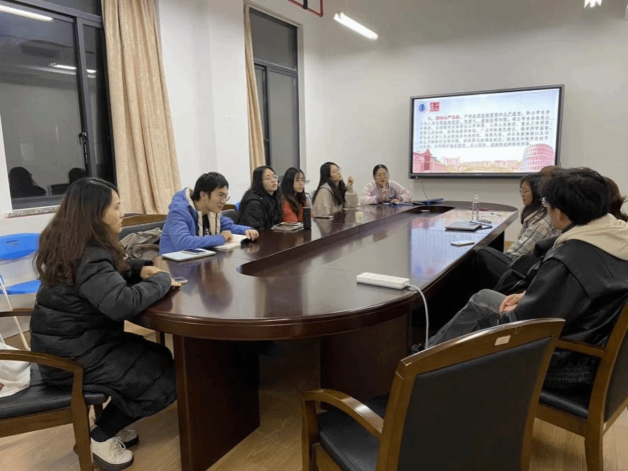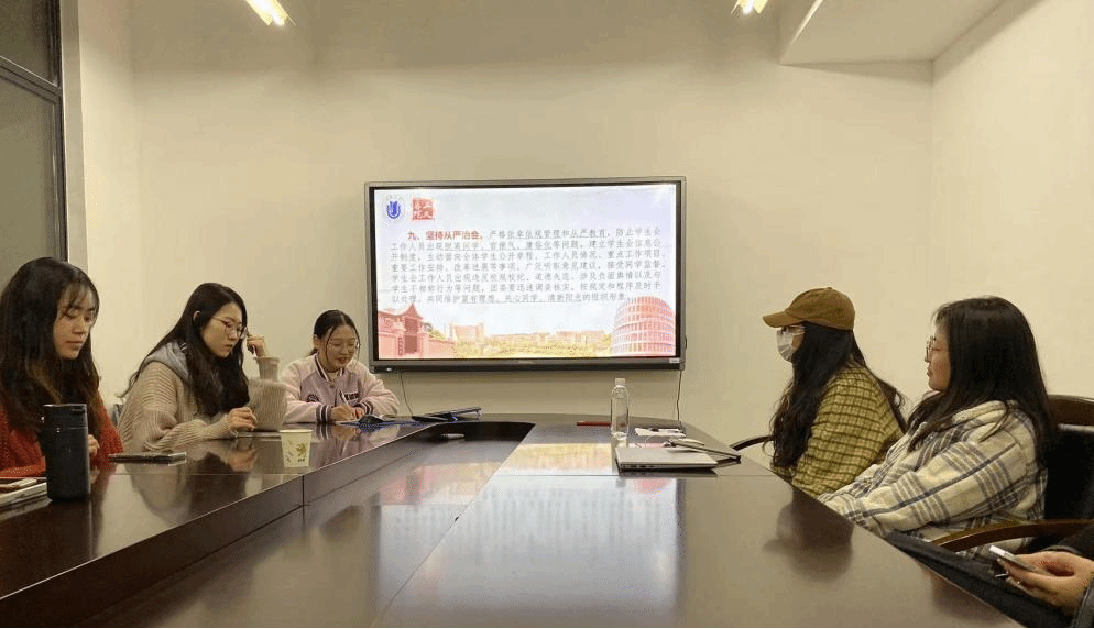 会议伊始,研究生会执行主席王南茜汇报总结2022年秋季学期研究生会相关工作的开展情况,并带领研会全体成员共同学习《关于巩固高校学生会(研究生会)改革成果的若干措施》《关于学联学生会工作人员改进作风服务同学的若干规定》文件精神。她表示研会各部门骨干在把牢政治方向的同时,要当好同学之间的桥梁纽带,熟悉本部门各项工作的同时提升服务实效,立足研究生群体的实际情况,本着“为同学服务”的初心做实事,认真协助好辅导员抓实学生干部队伍建设,强化部门工作职责考核评价,发挥良好带头示范和模范作用。
