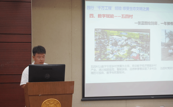 接着,2021级思想政治教育专业本科生韩春雨和2021级哲学专业硕士研究生牛逢春依次为大家做题为“践行‘千万工程’经验感受生态文明之美”赴湖州暑期社会实践项目的体验分享、赴静安区大宁路街道办事处挂职的经历,以实际行动号召大家勇于尝试,积极作为,向着更好的自己出发。