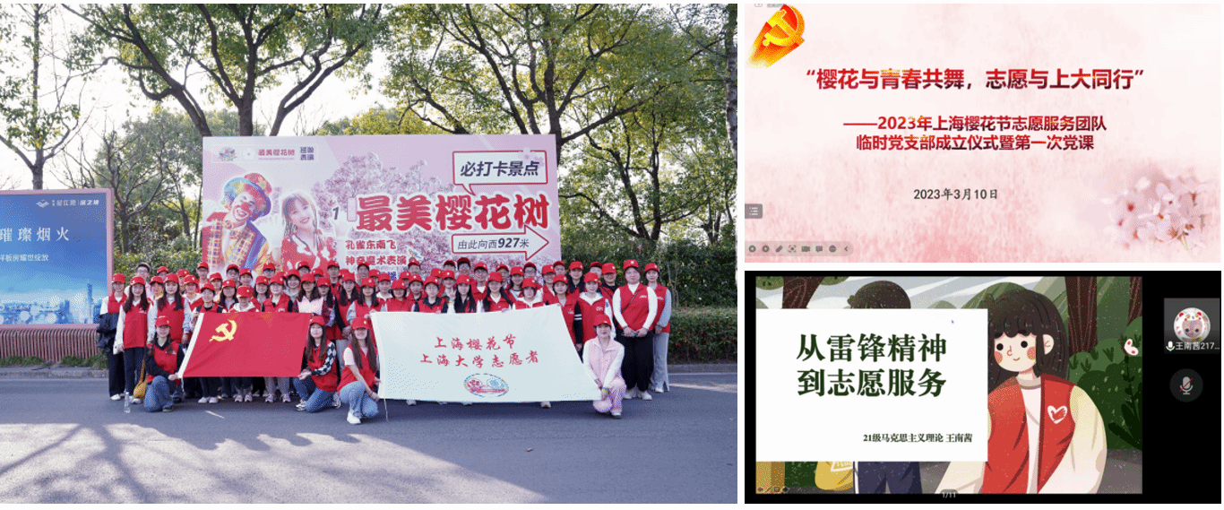为更好地发挥学生党员在上海樱花节志愿活动中的先锋模范作用,让“党旗红”携手“志愿蓝”,展现上大学子的责任与担当。3月10日,“樱花与青春共舞,志愿与上大同行”2023年上海樱花节koko体育官网志愿者团队临时党支部成立仪式暨“让青春发光,与志愿同行”主题党课顺利召开。上海樱花节koko体育官网志愿者团队的93名党员参会,会议由临时党支部书记高才雯主持。本次上海樱花节志愿活动极大地提升了党员同志们对志愿服务的认知,激发了志愿服务热情。在志愿活动中,临时党支部以党建为引领,发挥战斗堡垒作用,号召每一位党员志愿者积极投入志愿活动,以初心彰显先锋本色,忠于职守、扎实奉献,书写无愧于青年时代的精彩华章。