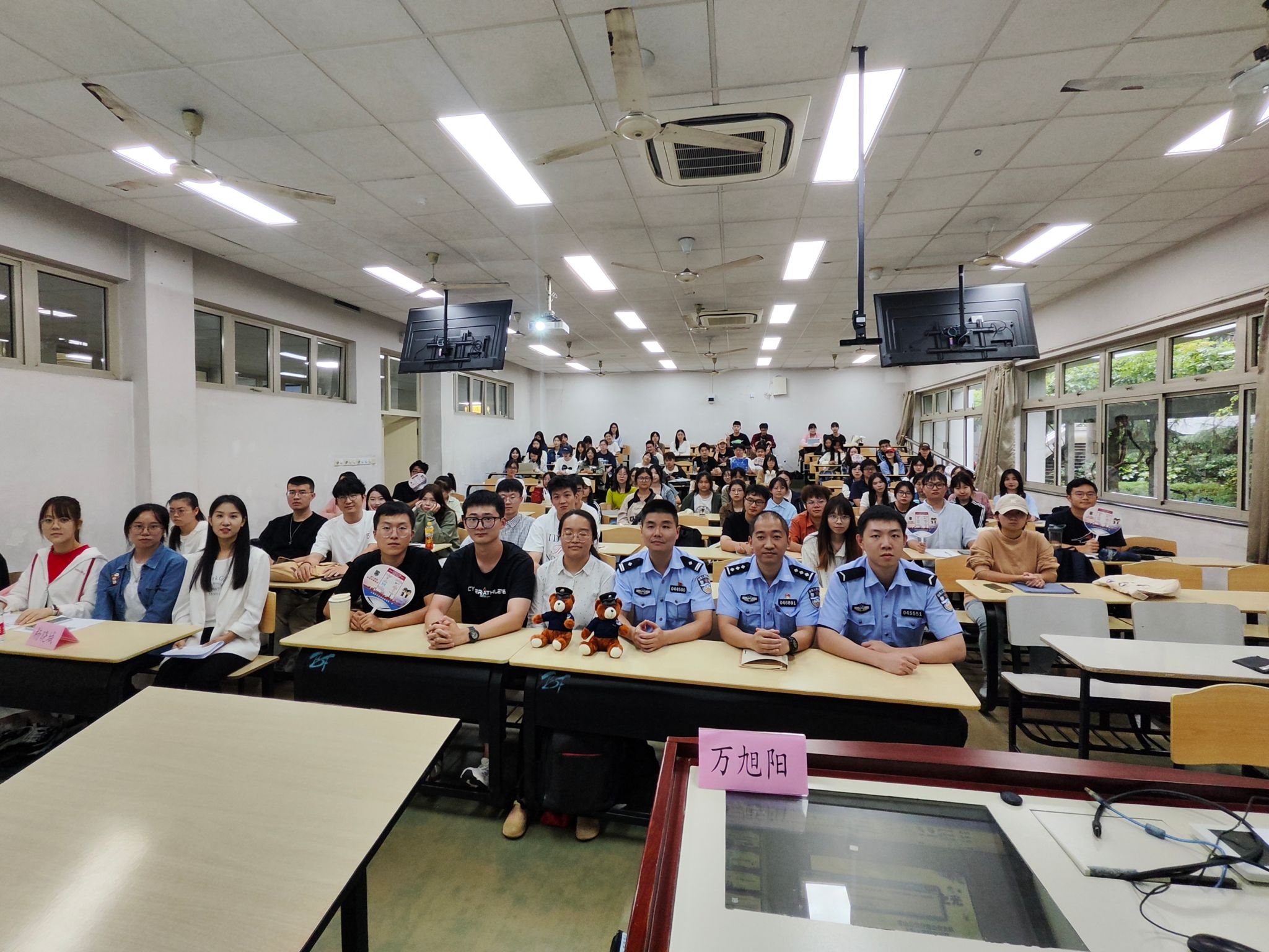 “什么是电信诈骗?”、“有没有特定的受骗群体?”以及“上当受骗的原因是什么?”,杨警官以电信诈骗三连问切入,先是为在场同学们详细阐释了诈骗犯罪分子的行为模型,分析了诈骗手法中常见的四大要素及其应用,并结合日常生活中的真实案例,通过“以案释法”的方式依次讲解了兼职刷单、虚假游戏交易、“杀猪盘”等大学生易上当受骗的诈骗手段,解读了诈骗分子的各类犯罪手法。此外,杨警官还对“卡农”和“跑分”这两种金融诈骗方式进行了科普,告诫学生警惕“热心帮忙却犯了帮信罪”的情况。最后,他让大家牢记“三个三”,即“三匹码”、三个电话号码和防骗“三心”法则,提醒同学们要时刻保持警醒意识,注意甄别真假信息。 警示你我他——朋辈宣讲在路上
