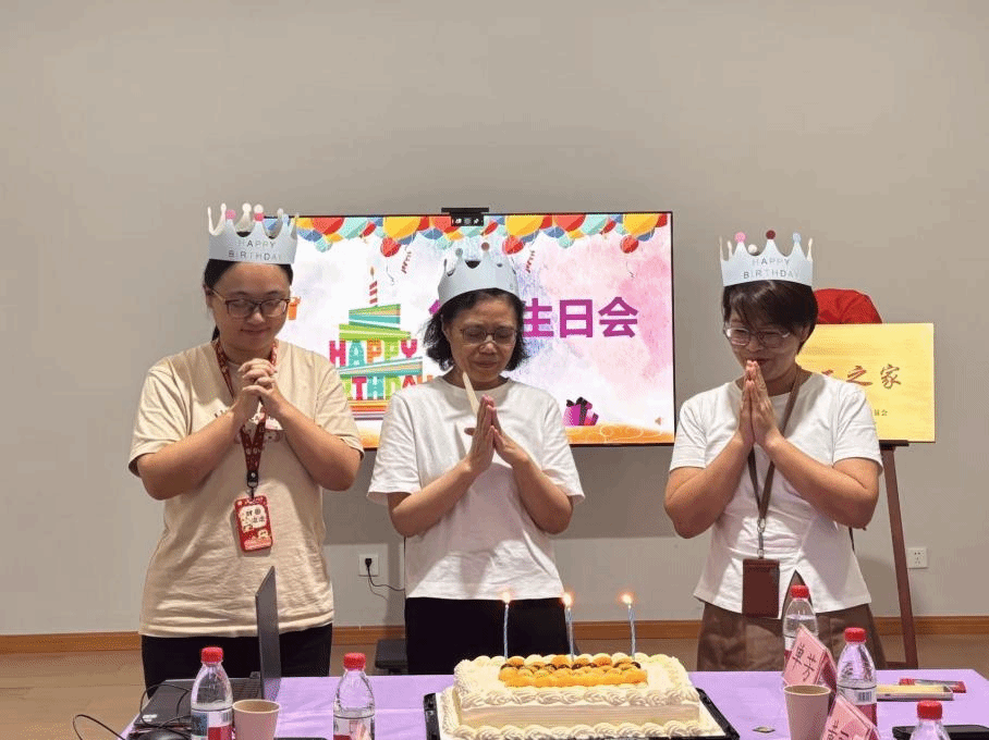 当天,学院分工会还为张印兰、尹岩、黄丽娜等老师举办“集体生日”会。伴随着欢快的生日祝福歌和闪烁的烛光,在场的领导和老师们一同为“寿星”们送上诚挚的祝福,大家一起分享生日蛋糕,现场气氛热烈而温馨,欢声笑语不断。在随后的交流互动环节,教师们畅所欲言,分享了对“教工之家”未来使用的期待与建议,并就如何更好地开展工会活动、增进彼此情谊进行了深入交流。