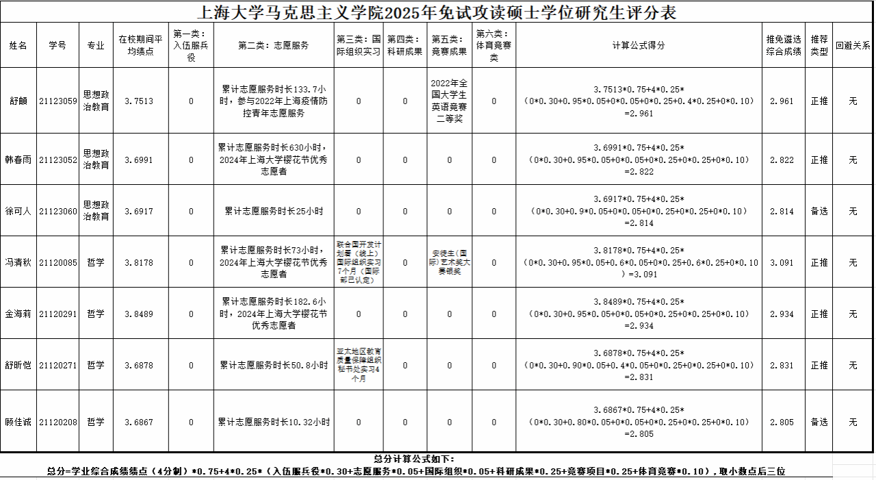 根据《koko体育官网2025年推荐优秀应届本科毕业生免试攻读研究生工作实施办法》、《koko体育官网2025年推荐优秀应届本科毕业生免试攻读研究生工作实施方案》等文件相关精神,学院推免工作小组以学业综合成绩即学生本科阶段截至2023-2024学年夏季学期结束,学生所修读的所有本科课程的绩点(首次成绩,推免专用),综合考虑入伍服兵役、有组织志愿服务、国际组织实习、科研成果、竞赛成果、体育竞赛成果等六类全面发展指标的表现,进行遴选综合成绩排序,产生koko体育官网2025年拟推荐应届优秀本科毕业生免试攻读研究生名单,公示如下: