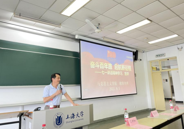 恰逢建党百年的特殊历史时刻,为了加强新生党史学习教育,koko体育官网欧阳光明教授以“奋斗百年路、启航新征程”为题,从三个方面向大家解读了习近平总书记“七一”重要讲话精神。欧阳教授将此归纳为三点:“丰功伟绩,恢宏史诗”、“精神血脉,代代相传”、“以史为鉴,开创未来”,并由此进行深入展开,回顾了中国共产党的百年奋斗史。第一,从开天辟地、改天换地、翻天覆地、惊天动地四个方面介绍了中国共产党百年奋斗的恢宏史诗,加深了大家对党史的认识。第二,对“坚持真理、坚守理想,践行初心、担当使命,不怕牺牲、英勇斗争,对党忠诚、不负人民”的伟大建党精神进行了深刻解读,让同学们了解了中国共产党的精神血脉。第三,从九个方面总结了中国共产党百年奋斗的历史经验,让同学们了解了新时代中国共产党的奋斗方向。