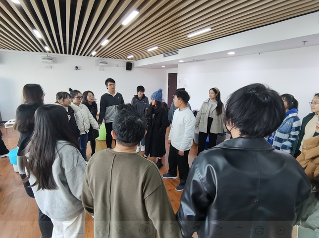 活动伊始,朱艳老师对同学们的到来表示热烈欢迎,并向大家讲解了团体朋辈辅导活动开展的形式,鼓励同学们在活动中积极交流、互相倾听陪伴。在朱艳老师的引导下,所有同学围坐成圈,一起闭眼进入奇妙的意境,那是在一个阳光明媚的午后,与森林里的动物亲密接触。每个人的“森林”都不完全一样,分别出现了松鼠、吃胡萝卜的兔子、梅花鹿、老虎、喷火的龙、羊等动物。在角色扮演环节中,一个人扮演兔子、大树或猎人,旁边的两位同学分别要配合扮演,难度逐渐增大,同学们全情投入,积极性和热情高涨,放下了原本由于陌生带来的紧张和羞涩。