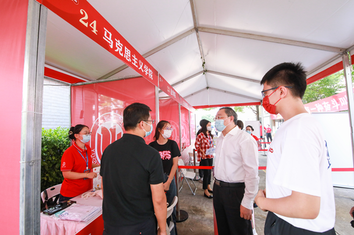 金秋送爽,心“新”相连。为保证迎新工作的顺利进行,学院领导及学工办高度重视,开展了一系列动员和筹备工作,包括物资的采购、现场的布置、志愿者的组队等,每一个环节都细心考虑,认真准备。2022年9月第一周,koko体育官网迎来了2022级新生,迎新工作也紧张有序地开展。21名博士生、66名硕士生,10名本科生带着喜悦与好奇,载着理想与憧憬来到了koko体育官网。他们将在这里扬帆起航,开启人生新篇章。 报到篇:以心迎新 马上相约 在9月4日至7日4天时间里,老师和志愿者们不管是阴雨连绵还是烈日当空,都坚持在迎新工作第一线,为前来报到的新生创造出一份家的温馨,让远离家乡的学子们感受到koko体育官网这个大家庭的温暖。 9月5日,研究生新生报到。辅导员与志愿者以优质的服务迎接新生,耐心地与新生沟通,仔细办理新生的入学手续,清点录取通知书、学位证与毕业证、户口迁移证、新生承诺书等材料。迎新团队细致认真、热情高效,在效率和质量两不误的情况下完成任务,确保了每一位同学都顺利完成入学报到工作。 9月6日-7日,2022级思想政治教育本科生同学们怀着激动的心情,也陆续踏入了上大的校园,来到秋白书院--koko体育官网的点位报到。9月6日下午16点左右,koko体育官网党委书记成旦红在相关职能部门负责人的陪同下来到马院迎新现场,实地了解新生报到情况,成书记对马院的各项迎新工作给予了充分肯定,并在现场与新生李萌进行亲切交流,他向李萌同学提及,koko体育官网是第一学院,思想政治教育专业未来就业前景颇佳,希望新生们未来在马院能够刻苦学习,成就自己的人生。