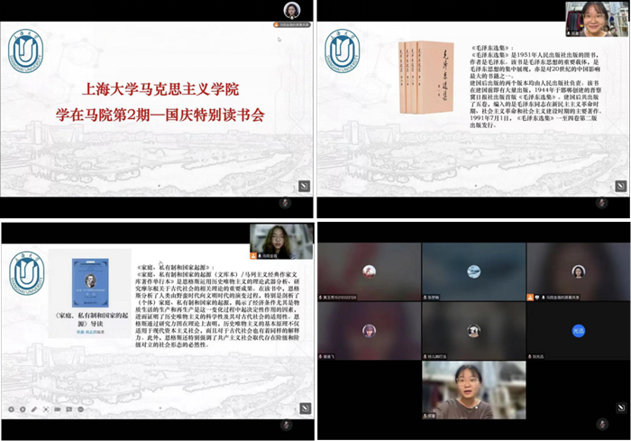 10月2日,依托本科生团支部团日活动,同学们一同前往中共四大会址纪念馆和国旗教育展示厅。在中共四大会址纪念馆里,同学们了解了中国共产党诞生至中共四大召开的光荣历史,近距离感受国旗创作诞生的伟大历程和人民群众爱国旗的动人故事。同学们身临其境地感受革命先烈们在救亡图存的恶劣环境中,为了人民的幸福和中华民族的未来,不惜抛头颅、洒热血的奉献精神,了解到中国共产党从诞生到发展壮大所付出的艰苦卓绝的努力,从而更好地激励同学们承担起新时代历史使命。 三、阅读经典名著,增强理论学养