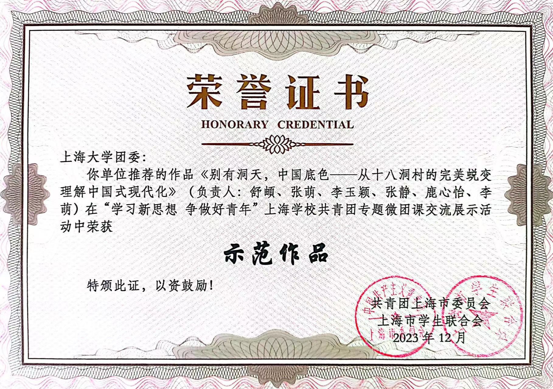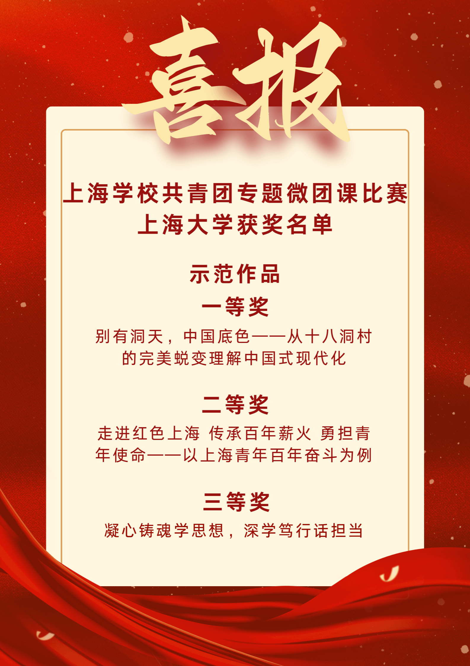 为全面学习贯彻习近平新时代中国特色社会主义思想和党的二十大精神,深入落实习近平总书记在同团中央新一届领导班子集体谈话时的重要讲话精神,加强对共青团员的政治锻造,加强对广大青年的政治引领,12月23日,由团市委、市学联共同开展的“学习新思想 争做好青年”上海学校共青团专题微团课交流展示活动在华东师范大学(普陀校区)举行。 koko体育青年学子在此次活动中斩获佳绩。由申小翠教授指导,舒頔、张萌等6名思政专业本科生组成的团队获市级一等奖;由李坚教授指导,罗逸雪、周孙卿等6名本、硕、博学生组成的团队获市级二等奖。一等奖作品获“示范作品”,得到团中央、团市委领导和专家现场观摩和点评指导。全市共10支青年师生团队或个人参与现场展示,从全市66家高校、高职和16家市属团组织属地高中的的200余件复赛作品中遴选产生。