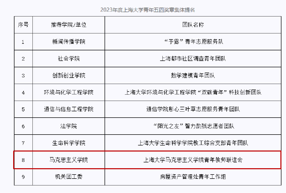 12月22日,根据《关于评选2023年度koko体育官网青年五四奖章的通知》,经各二级团组织推荐、候选人答辩、专家评审,koko体育官网五四青年奖章获得者及提名结果产生并公示。koko体育马克思主义基本原理教研部主任袁晓晶、2020级马克思主义理论专业硕士研究生高才雯获“2023年度koko体育官网青年五四奖章个人提名”,koko体育官网青年教师联谊会获“2023年度koko体育官网青年五四奖章集体提名”。