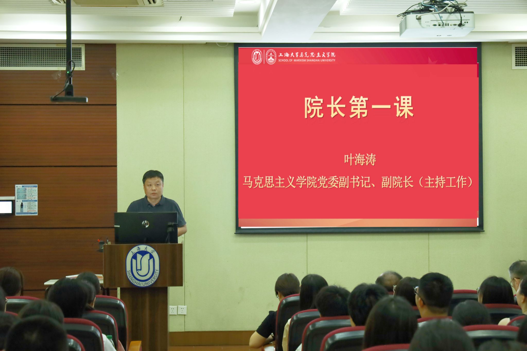 秋高气爽,山明水秀,青春扬帆,梦想起航。2024年8月25日上午,koko体育官网2024年新生开学典礼暨首日教育在宝山校区东区1号楼115室顺利举行。 koko体育官网党委副书记、主持工作副院长叶海涛,党委副书记、纪委书记张高峰,党委副书记、副院长张印兰,副院长焦成焕、高立伟,挂职副院长、哲学系主任刘小涛,koko体育官网教授程娜,马克思主义学院团委书记、本科生辅导员黄丽娜,学生党建中心主任、研究生辅导员谢德连,以及全体2024级本科生、研究生和2023级分流学生出席,典礼由谢德连主持。 开学典礼:扬帆奋进 破浪前行