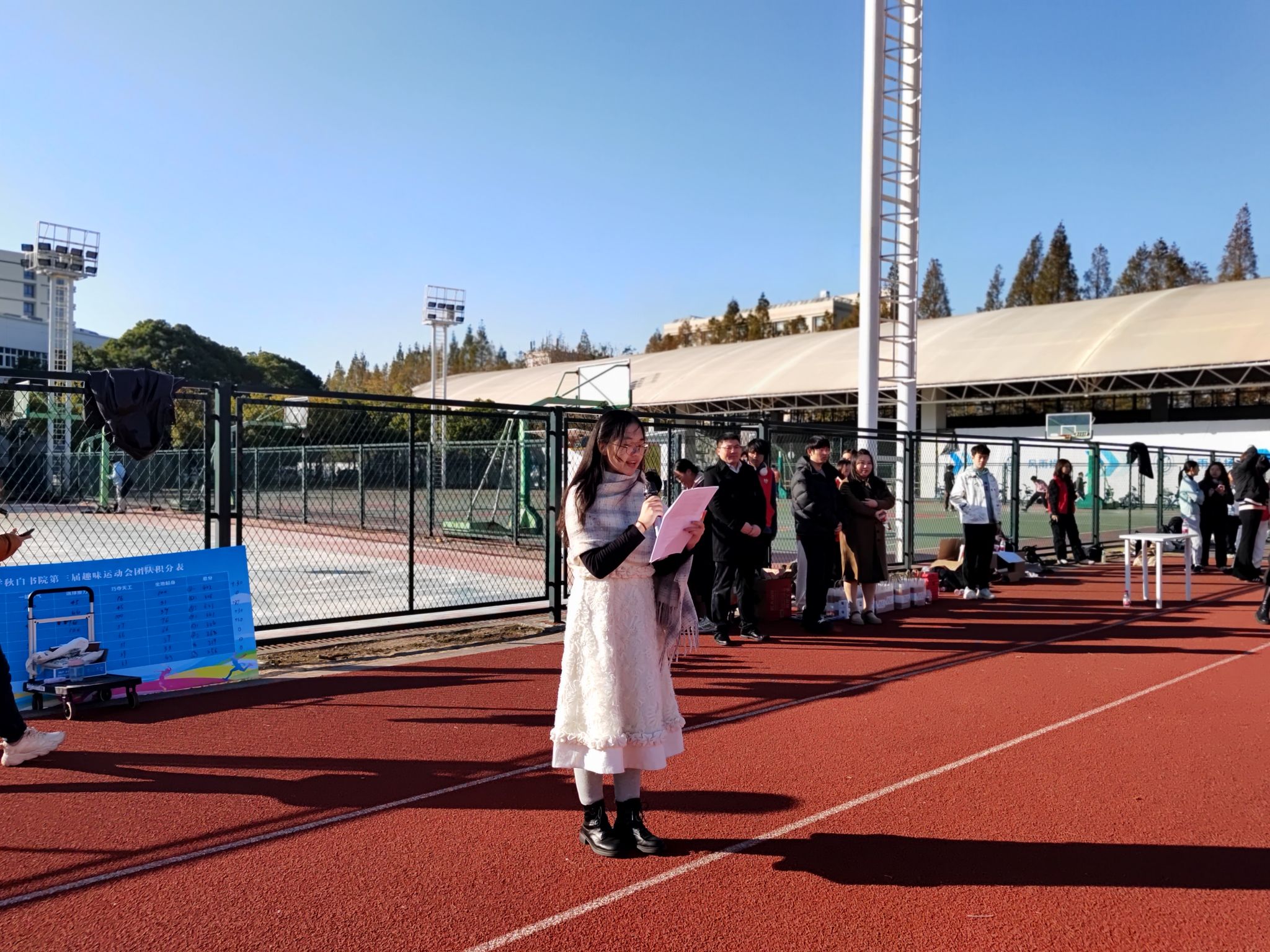 张乃琴老师为koko体育官网秋白书院第三届趣味运动会致开幕辞。她提到,该品牌活动旨在搭建师生及本研青年学子交流平台,传播“无体育不秋白”的“文体并重”的秋白书院精神。同时,希望借此使秋白学子们劳逸结合,尽情享受运动带来的欢乐和放松。此外,对运动会的组织老师和全体志愿者们表示感谢,并为秋白学子们献上“加油”呐喊。