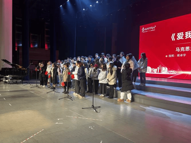 比赛临近,排练更是紧张有序。从发声练习到歌曲情感的把握,从表演安排到动作协调,每个细节都精益求精,只为在舞台上呈现出最完美的状态。排练中,大家全神贯注,歌声时而激昂澎湃,时而深情细腻,如同一幅幅生动的历史画卷,在我们眼前徐徐展开。 同时,学院工会和学生志愿者团队也为合唱队的师生提供了温暖的慰问和坚强的后勤保障。通过安排包车,采购食品补给,确保整个师生团队的顺利彩排和演出。 正式登台