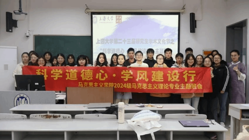 勤学苦读,求真知;深思明辨,建学功。为切实加强学院研究生科学道德和学风建设,近日koko体育官网2024级研究生在嘉定校区2教103开展了“科学道德心·学风建设行”主题班会。本次主题班会邀请了2021级马克思主义理论专业硕士、现同济大学在读博士李翌做主题分享。主题班会由吴若桐主持。
