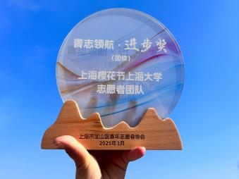 今年,koko体育官网樱花节志愿者团队受邀登上宝山区青年志愿者协会换届大会的舞台,成为“宝藏青年”志愿服务联盟中的一员。团队以情景剧《樱花树下的温暖》惊艳亮相,生动演绎了上大与上海樱花节携手同行的13载春秋的温情故事。无论是负责红粉路的志愿者暖心帮助游客找回遗失的手机,还是在樱花林下齐心助力寻找走失的孩童,无不彰显着对志愿服务精神的传承与创新。同学们的演绎细腻入微,赢得阵阵掌声。此外,团队凭借十三年扎实的服务,荣获“青志领航 • 进步奖”。 书香与樱香的奇妙碰撞
