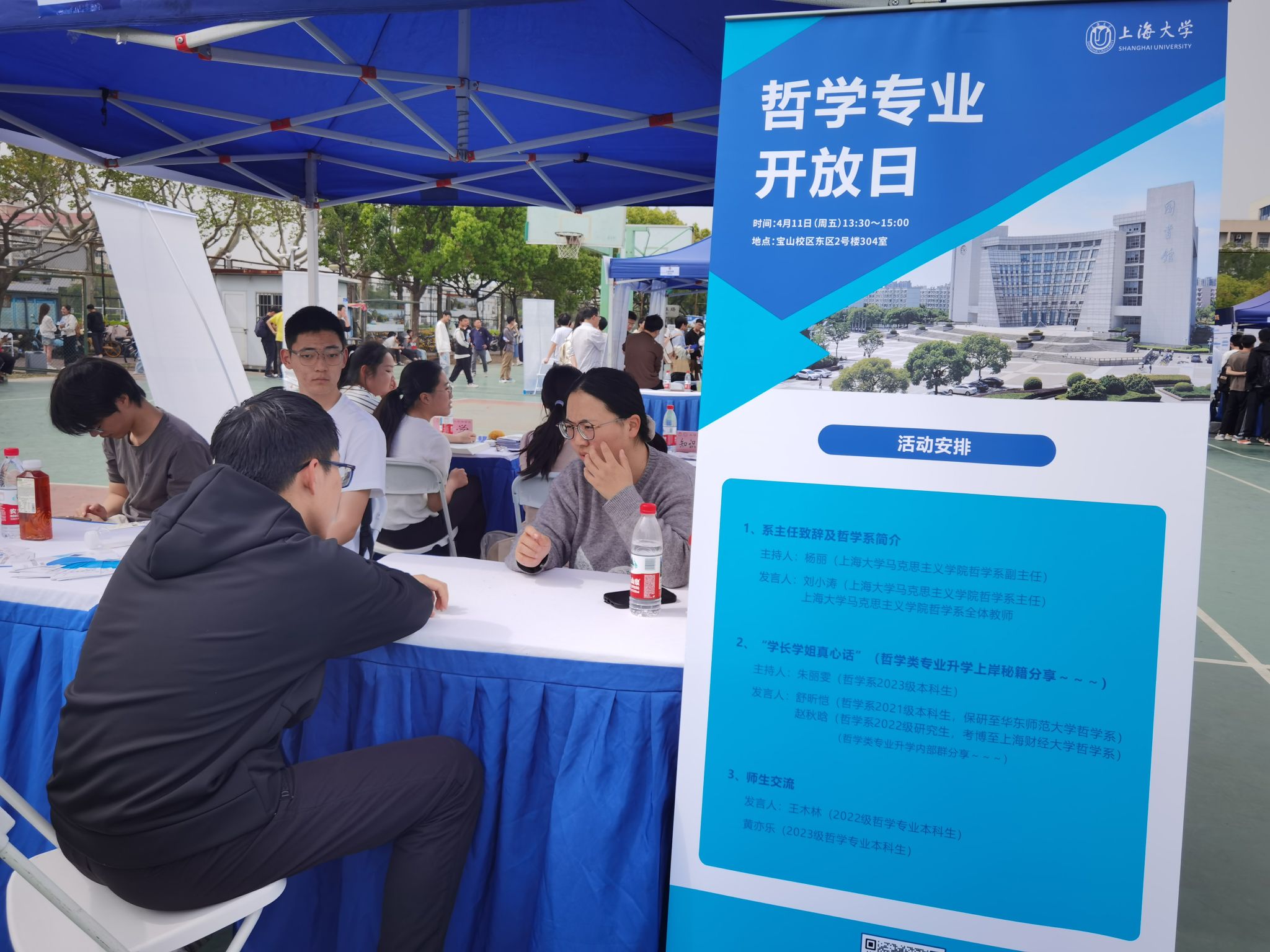 当日中午至下午,哲学专业博览会在koko体育官网宝山校区I区篮球场举行。由koko体育官网哲学系副主任杨丽、本科生辅导员黄丽娜以及学生代表组成的导览团队以丰富的知识和饱满的热情为前来参观、咨询的同学答疑解惑。