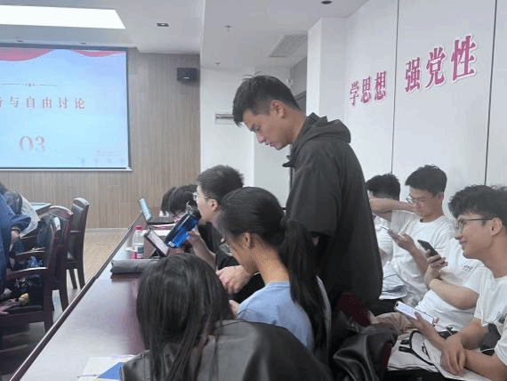自由讨论环节,青年党团员同学聚焦“思想启蒙”“教育内核”“实践行动”“价值观碰撞”与“文化破圈”五大议题展开分组研讨。各组同学在深入交流后,推选代表依次阐释核心观点。期间,同学踊跃提问,现场思想交锋热烈,不同观点在坦诚对话中碰撞、交融。这一环节不仅深化了同学们对议题的理解,更有效锻炼了大家的批判性思维与表达能力