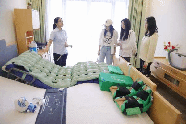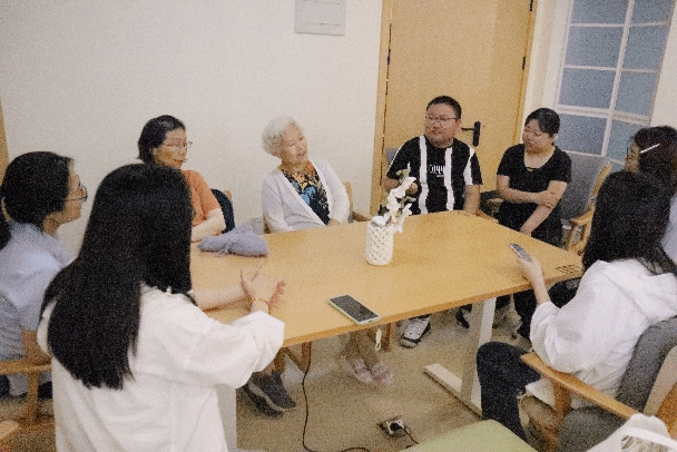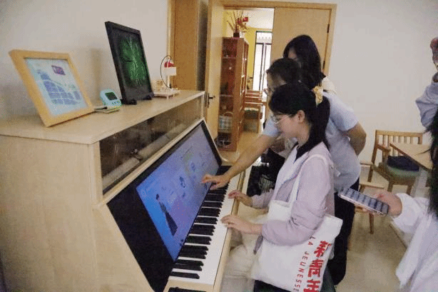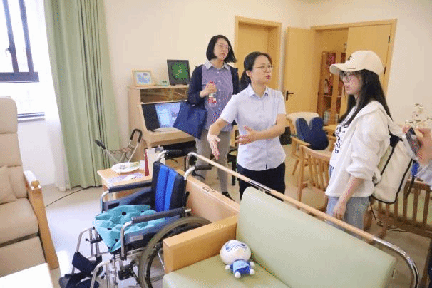 实践第二站——长宁区北新泾街道综合为老服务中心——爱馨苑。期间,团队成员主要考察了服务中心适老化改造的智能家居样板间,亲身体验如智慧厨房、智能钢琴学习机、智能身体数据检测仪、智能护理床等智能设备,实地感悟北新泾街道智能适老化服务的成效。团队成员与工作人员及社区老年人代表开展座谈会,就智能适老化设备的应用、特色项目推广及老年人满意度等内容展开深入交流。 在长宁区江苏路街道的申宁苑综合为老服务中心,团队向工作人员深入了解江苏路街道的老龄化情况,详细询问适老化项目改造情况及智能化设备适老状况等内容。团队成员亲身体验虚拟超市购物、虚拟ATM使用等智能康复项目,并与认知障碍老年患者的智能伴宠——“嘉嘉”进行近距离接触。在黄浦区五里桥街道社区综合为老服务中心,团队成员们深入调查养老服务数据大屏与养联卡的具体使用情况。在与社区老年人代表、社区工作人员座谈中,两位90岁高龄的奶奶笑盈盈地向团队成员讲起社区为老年人提供的贴心帮助,还向成员们展示社区专门为老年人定制的“安享包”服务等。在普陀区曹杨新村街道,团队走访了杨新村街道社区事务受理服务中心及云集曹杨养老院,了解到曹杨新村是全市首发一键叫车社区点,该做法有效跨越数字鸿沟,方便老人出行。