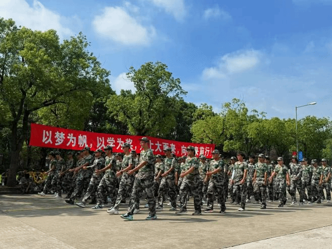 4-1-4连队军训剪影 王国建对全体参训学生在军训中的努力和表现给予了肯定和鼓励,并对带训教官和教师们的辛勤工作表示感谢。他勉励同学们要迎难而上,始终保持斗志昂扬的精神状态,充分彰显马院学子应有责任与担当,既要争做思想进步的引领者、主动作为的实践者,也要在军训中淬炼坚强体魄、锻造顽强意志。