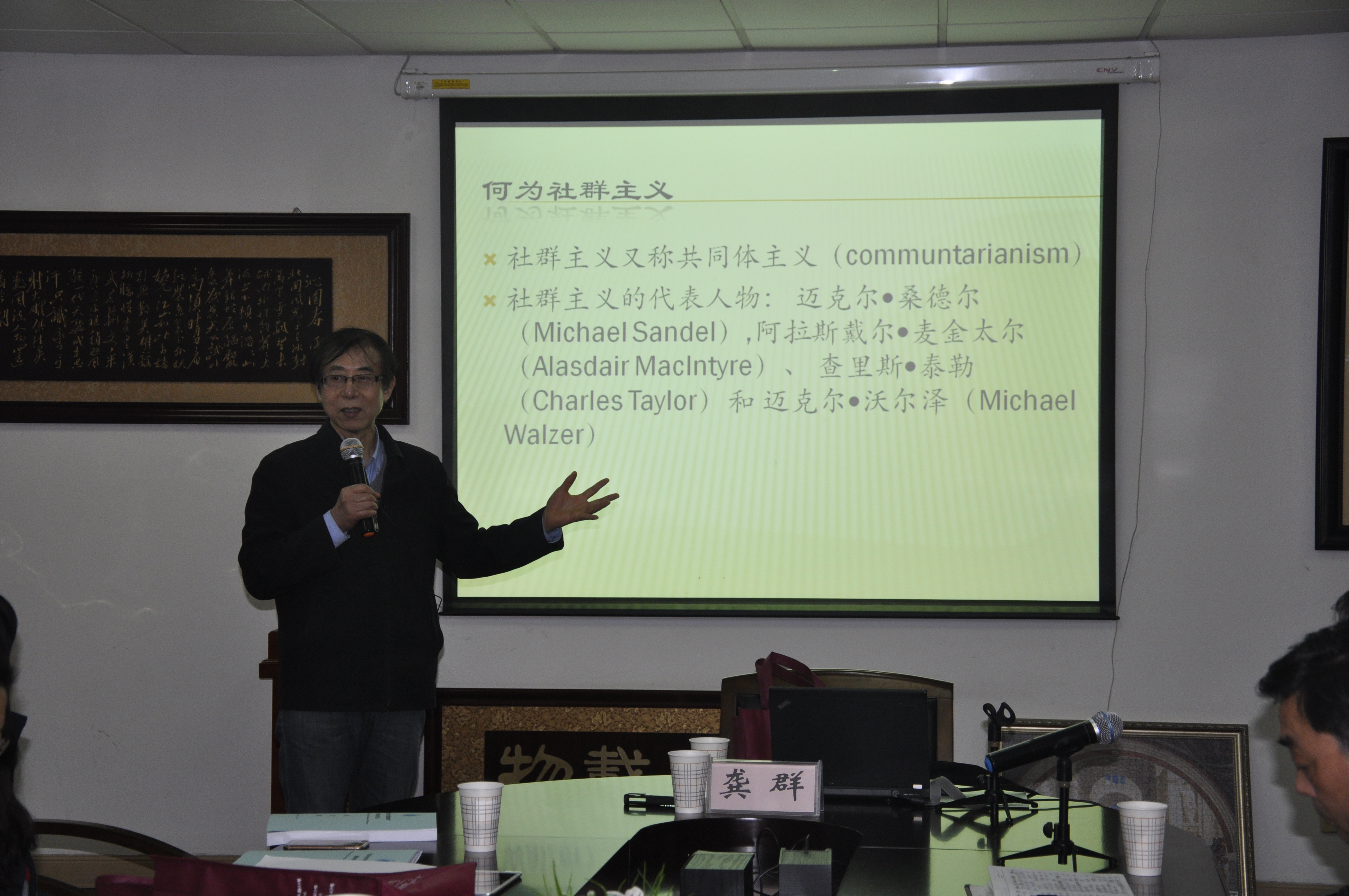2015年12月11日晚上7:30,koko体育官网"泮池言学"系列暨社科论坛第一五一讲在校本部B401举行。本次论坛由中国人民大学伦理学研究基地执行主任龚群教授带来题为"社群主义的共同体观念"的学术讲座。论坛由吴德勤教授主持,koko体育官网欧阳光明、沈海燕、周丽昀、杨庆峰、刘友古、鲍建竹、张亚月、曹青春老师和部分硕士研究生参加了此次论坛。 龚群教授首先以何为社群主义引出了社群主义思想的四位代表人物,并就社群主义与自由主义、个人主义和利己主义的历史起源和发展进行了深刻的辨析。他指出每个人都不是一个独立的原子化的个人存在,而是从属于家庭、单位、国家,是共同体的一部分。 接着,龚群教授介绍了桑德尔的共同体观念,指出共同体的共性表现在情感上,拥有共同情感的人结合成一个共同体。共同体由参与者所共享的自我理解构成,参与者组成了共同体,共同体反过来塑造了个人的特性。然后,龚群教授介绍了麦金泰尔关于现代社会自我与共同体的观念。强调现代社会已经不是其成员的共同体,现代社会的自我已经丧失了由社会身份约定人的使命与责任的传统的规定。最后,龚群教授讲解了古代亚里士多德伦理学意义上的共同体和基督教修士的共同体,认为德性是共同体中重要的因素。 短短俩个小时很快就过去了,龚老师的演讲让老师和同学们意犹未尽。此次论坛激发了同学们对自由主义和社群主义的思考。论坛结束后,在场师生与龚群教授继续探讨了关于德性和情感的作用等问题。论坛在一片热烈的掌声中圆满结束。 koko体育官网2015级硕士研究生 郑华杰 |