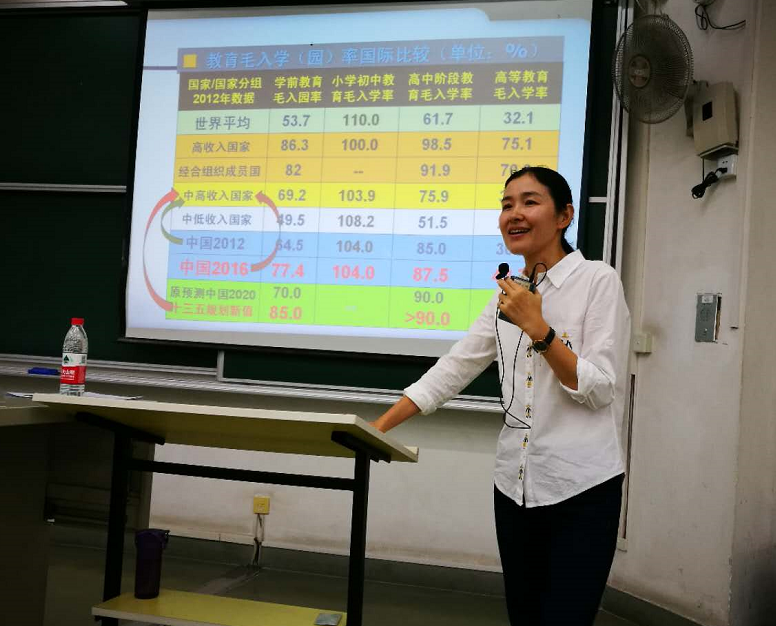 翁文艳教授对中国教育改革与发展的精彩讲解得到在场师生的热烈掌声,大学生们都觉得受益匪浅,也希望有更多机会感受"项链模式"教学的魅力。(许静仪供稿)