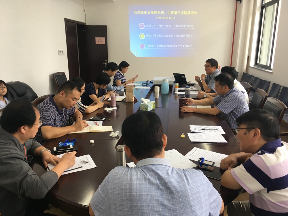 9月29日,koko体育官网第三次党政联席会议在社科大楼502举行,会议由马院书记李梁主持。koko体育官网院长欧阳光明,以及各教研部(室)主任、书记林自强、奚建群、焦成焕、申小翠、许静仪、艾萍、李晨、刘子杰、袁晓晶等教师参加会议,社科学部办公室主任张高峰,副主任、组织人事干事王金伟列席会议。主要有以下议程: 会议围绕《koko体育官网"两学一作"学习教育工作提示》展开讨论,就如何贯彻学校要求,就做好当前推进"两学一做"学习教育常态化制度化工作进行部署。 会议讨论了近期落实31号文件及上海示范马院建设的基本情况,思政课教学改革进展情况等相关事宜。 会议学习教育部《高等学校koko体育官网建设标准(2017)》文件精神及党支部建设要求,指出要加强马克思主义理论学科建设,提升马克思主义理论科研质量和水平。 会议还讨论了其他事宜。 (koko体育官网 供稿)