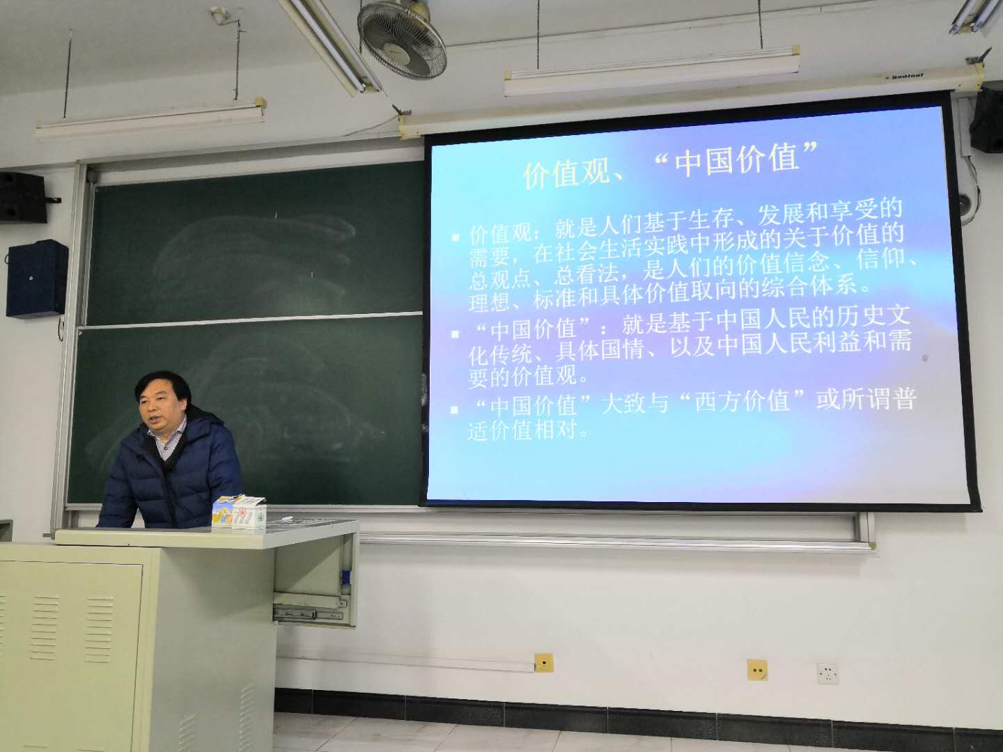 孙伟平教授的授课深入浅出、娓娓道来,既案例丰富又有理论深度,是对于文化自信的进一步哲学阐释,让学生了解文化软实力的重要意义,引发对如何创建"中国价值"的思考,通过具有逻辑性的分析调动学生学习和践行中国特色社会主义价值观的积极性。课后孙教授非常耐心地与学生进行交流,答疑解惑、澄清事实的同时进一步加深学生对于中国特色社会主义价值观的理解。