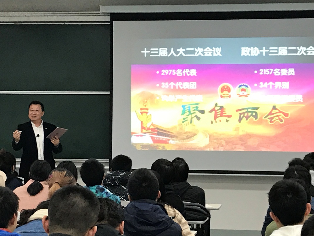 落实思政课教师座谈会精神,上大在行动。3月28日下午,全国政协委员、国家杰青、koko体育官网副校长汪晓帆教授主动来到思政课课堂,接连两场,热情与两个选课班的青年学生面对面,分享他出席全国两会的所思所想所获。 这次"形势与政策"课的主题是"两会"。汪校长手握Paid和笔,从呈现的三道选择题,开始师生互动,生动讲解了"两会"的制度设计。 接着,汪校长介绍了习近平总书记看望文化艺术界、社会科学界委员并参加联组会的情况。他从2018年工作回顾、2019年发展目标和政策取向以及民生、教育、经济等重点领域,深入讲解了李克强总理所作《政府工作报告》的主要内容与重要意义。他用大量翔实数据给同学们分析了当前的国内外形势,使同学们既明了当前的局势,又感受到信心与希望。 最后,汪校长引用习近平总书记在北京大学师生座谈会上的讲话,"每一代青年都有自己的际遇和机缘,都要在自己所处的时代条件下谋划人生、创造历史。青年是标志时代的最灵敏的晴雨表,时代的责任赋予青年,时代的光荣属于青年。"他勉励上大学子,要拥有博大胸襟,通晓国内外形势,勤学乐思,勇于担当,锤炼本领,努力报效国家! 作为全国政协委员,汪校长用亲身与会经历和参政议政体会,给了思政课针对性和感染力。两个班级的学生认真听讲,积极思考。课后,18级社区学院刘兴艳同学说:"大学是我们人生观和价值观形成的关键时期,在这个课上所接触到的、学习到的东西将会对我们今后的人生之路产生莫大的影响,而了解国内形势和世界格局,对我们价值观的影响更是深远。"16级社会学院张琪琛同学说:"听了汪校长的讲课,最大的感受是‘制度自信’的加强!他参加‘两会’的亲身经历,在感受上更为真实,也更容易被接受。有一种关乎切身利益的亲和感!" 16级材料学院翟苏豪同学说:"我们这一代即将踏入社会,扛起中国发展的大旗,现在就更要多了解学习国内外局势,认真思考国家所做的一系列举措,努力地成为美丽中国的建设者和守护者!"