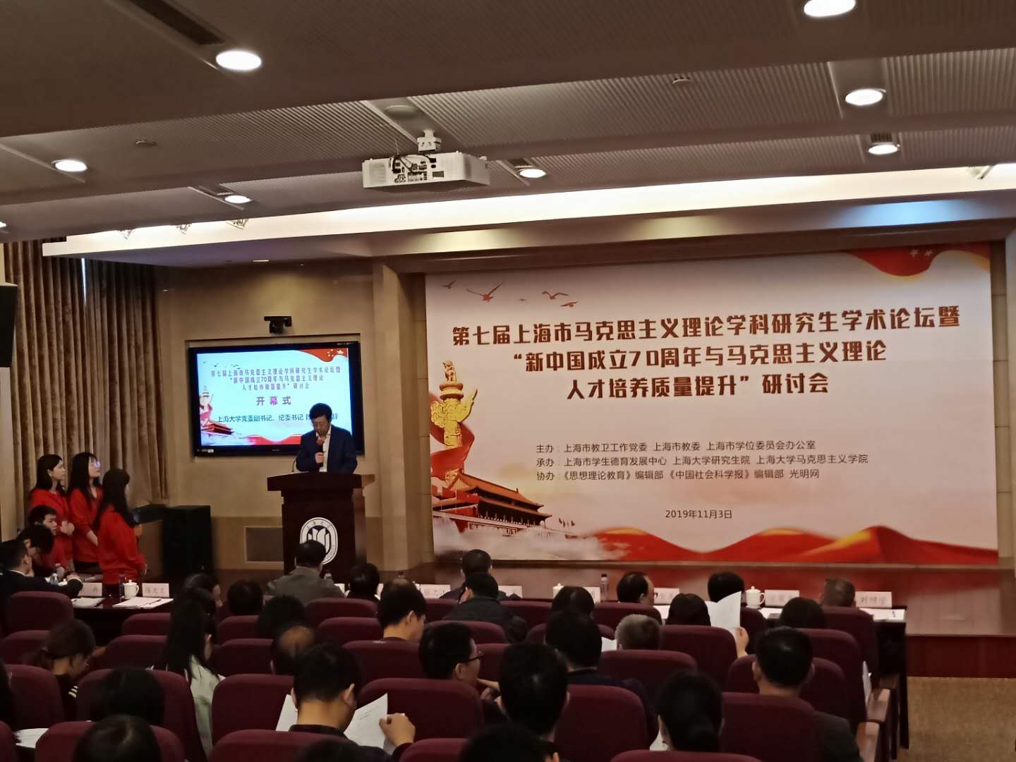 2019年11月3日上午,第七届上海市马克思主义理论学科研究生学术论坛暨"新中国成立70周年与马克思主义理论人才培养质量提升"研讨会在koko体育官网宝山校区顺利举行。论坛由上海市教卫工作党委、上海市教委、上海市学位委员会办公室主办,上海市学生德育发展中心、koko体育官网研究生院、koko体育官网承办。上海市学位委员会办公室主任束金龙、上海市教委德育处处长沙军、上海市学生德育发展中心副主任宗爱东,以及koko体育官网党委副书记、纪委书记段勇、koko体育官网研究生院副院长张之江等出席论坛。此外,上海高校马克思主义理论学界领军人物、学科中坚以及学术新人等共160余人参加了论坛。论坛表彰了上海市2018年度马克思主义学科研究生人才培养登峰计划获得者和本次论坛征文优秀论文作者。koko体育官网院长孙伟平教授主持了开幕式。koko体育官网党委副书记、纪委书记段勇同志为开幕式致辞。 段勇指出,新中国70年的发展变化和建设成就举世瞩目,其中最为耀眼的是中国共产党带领人民开辟了一条社会主义建设的独特道路,并形成了一整套中国特色社会主义制度和国家治理体系。而其中最为关键的方面,就是始终坚持马克思主义指导和中国共产党的坚强领导,坚持把马克思主义基本原理同中国具体实际相结合,赢得了中国革命、建设和改革的伟大胜利。他同时强调,大力培养新时代高素质马克思主义后备人才,是党和国家赋予高校的重要使命。事实证明,具有一大批理想信念坚定、道德情操高尚、理论功底扎实、创新能力突出、学风文风优良的马克思主义理论人才,是党和国家事业成功的坚强保证。而今天新时代的koko体育官网、学科、学人就担负着这一崇高使命。培养马克思主义理论人才必须打牢马克思主义理论的基本功,要做一个合格的马克思主义研究者、宣传者和践行者,必须具备扎实的理论功底和学术素养。 上海市学位办主任束金龙宣读了2018年马克思主义学科研究生人才培养登峰计划表彰决定。来自七所上海高校、科研单位的10位研究生的学位论文入选,其中四篇博士论文,六篇硕士论文。"登峰计划"系由上海市教育卫生工作委员会、市教育委员会、市学位委员会办公室于2013年起共同实施,以进一步提高马克思主义理论学科研究水平、着力具有一定影响力、高水平的优秀人才为宗旨。本次论坛组织了研究生征文,共有10位博士和硕士研究生获得优秀论文奖。koko体育官网研究生院副院长张之江为征文优秀论文作者颁发了证书。 华东师范大学宋进教授作为登峰计划获奖导师代表发言,他指出马克思主义理论教育主要体现在人才培养上,人才培养作为权重最高的一部分在今天看来格外重要。他认为koko体育官网要有学科包容度和学科自信,马克思主义理论研究者要有充分的理论自信和学科自信,自信同时要自觉,自觉反思走向自强。 上海市德育处处长沙军作总结发言。他指出在新的形势下,马克思主义理论学科建设应聚焦习近平新时代中国特色社会主义思想研究,适应高校"双一流"建设,从"增量"发展转向"提质"发展,从"补短板"走向"扬长板",不断强化内涵建设,努力在创新中国理论中发挥更大作用。一是要加强马克思主义理论学科建设,根本遵循是学思践悟习近平总书记在学校思想政治理论课教师座谈会上的重要讲话精神。二是要在促进课程教学、促进成果产出、促进学科人才培养上下功夫。三是要聚焦全面深化新时代思政课改革创新上。 koko体育官网副院长高立伟教授主持了主题报告环节。同济大学特聘教授陈大文、koko体育官网教授王天恩、复旦大学koko体育官网院长李冉教授、上海社会科学院研究员、《学术月刊》总编姜佑福,分别作了"马克思主义理论学科群意识与核心能力培养"、"研究生教育与社会发展驱动升级"、"提高研究生培养质量要善于用好‘培养方案’这个抓手"以及"如何处理学位论文与普通论文撰写之间的关系"的主题报告。 陈大文认为,马克思主义理论学科群建设要以马克思主义理论为基础,并可以将政治学、教育学和哲学社会科学等相关内容纳入。并强调高等学校要把马克思主义人才培养作为重要任务,创新人才培养机制,全面提高马克思主义人才核心能力。王天恩指出,无论是理工科学,还是人文学科,作为高层次人才培养的研究生教育,其基础性作用就在于培养创新意识,国家应该创造条件和机会,为研究生人才消除后顾之忧,全身心投入研究创新,促使研究与创新成为研究生的内在需求。李冉指出了当前高校马克思主义理论学科研究生教育培养中存在的一些问题,并强调需要用制度、用根本大法来解决,"培养方案"就是解决这些问题的根本大法。要深入研究马克思主义经典著作,聚焦习近平新时代中国特色社会主义思想,以"培养方案"为指导,着力解决突出问题。姜佑福认为,学位论文要在导师的指导下,按照国家学科发展要求进行研究,期刊论文是需要结合期刊平台特点,撰写特色文章。学位论文是以打基础、练内功为主要,期刊论文则要区分专业性,要将课题、课程、论坛等专题论文结合起来。同时,研究生做论文要有问题意识,能够抓住学科领域的大问题,这样才能触发读者的内心。 华东理工大学koko体育官网副院长徐国民教授主持了研究生交流环节。6位研究生分别代表登峰计划获得者和