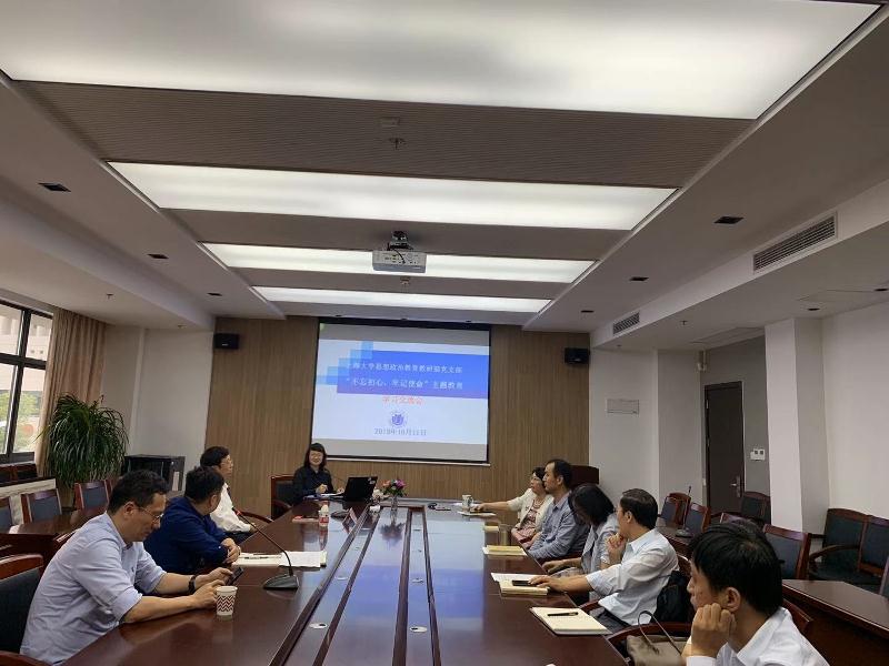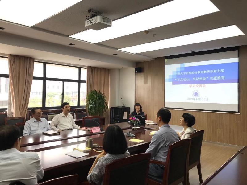2019年10月11日,学院思想政治教育教研部党支部开展"不忘初心,牢记使命"主题教育学习交流会。校党委副书记、纪委书记段勇出席、指导。学习交流会由首批100家全国高校"双带头人"教师党支部书记工作室支部书记杨秀君同志主持。