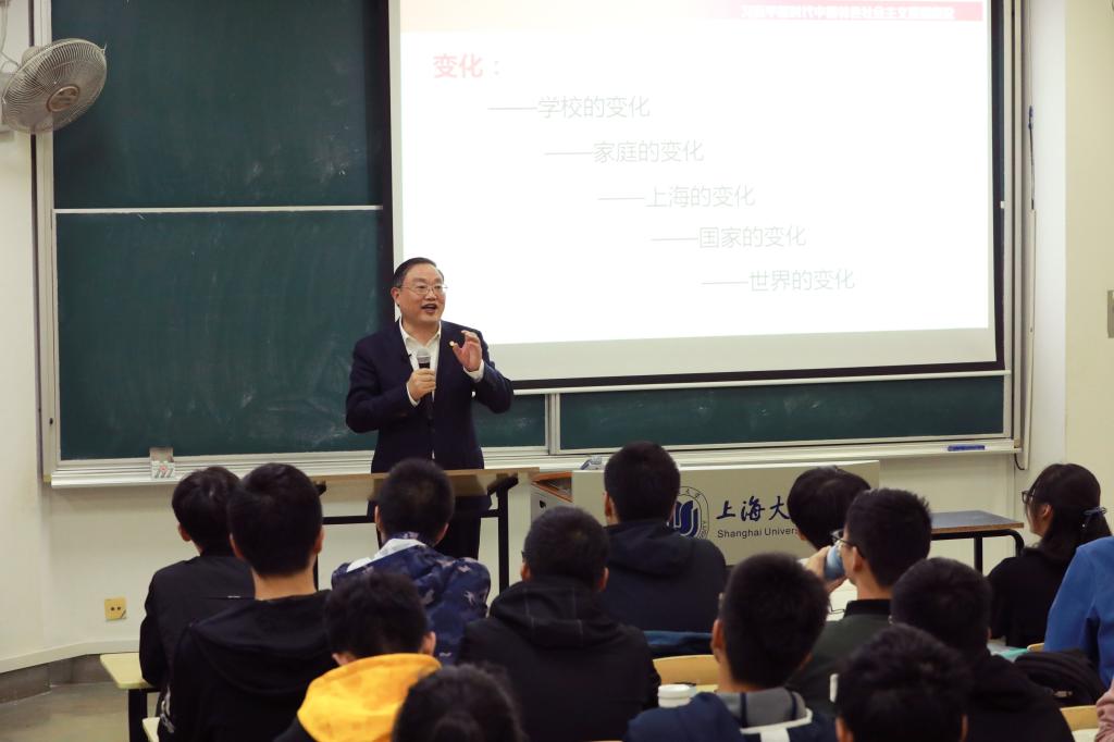 为落实上海市高校示范koko体育官网工作会议暨“习近平新时代中国特色社会主义思想概论”课程建设会议精神,根据学校整体安排,koko体育官网于2019年秋季学期面向钱伟长学院本科学生开设了“习近平新时代中国特色社会主义思想概论”试点课程。该课程采取项链模式进行教学,教学团队成员来自学校各个学院、各个不同专业背景的教学名师和校外各领域专家。11月10晚,课程领导小组组长、koko体育官网党委书记成旦红教授走进课堂,为钱伟长学院本科生讲授“习近平新时代中国特色社会主义思想概论”课。 成旦红书记的授课紧紧围绕“中华民族伟大复兴的战略全局”和“世界百年未有之大变局”这两个大局,以“变化”作为关键词,从学校(koko体育官网)的变化、家庭的变化、上海的变化、国家的变化、世界的变化五个层面,向同学们展示了自己的思考,勉励同学们要时刻胸怀“两个大局”。成书记的授课,不仅具有深邃的理论思考,更是以自己的亲身经历、感人的故事、详实的数据,娓娓道来,引人入胜,同学们不时露出会心的微笑,产生强烈共鸣,引来阵阵掌声。 课程最后,成书记特别强调,现在国际社会已经发生了非常大的变化,用一句话说就是毛主席讲的“风景这边独好”。我国新冠疫情防控这场人民战争取得了决定性的胜利,体现了中国的制度优势。当前,百年未有之大变局需要大家共同面对。中华民族的伟大复兴不是敲锣打鼓、轻轻松松就能实现的,需要有“中华儿女多奇志,敢叫日月换青天”的勇气。为此,成书记对同学们提出了三点希望。一是希望同学们要具有强烈的责任担当。对上大的各位同学来讲,老上大的一批批有志青年拯救民族于危亡之际,老上大培养了一大批我们的革命先行者,koko体育官网的所有同学都是这个红色的根上生发出来的芽、结出来的果,我们koko体育官网的每位同学都应该赓续红色基因,继承责任担当,国家的事、民族的事,就是我们koko体育官网所有同学的事。二是希望同学们要具有深厚的爱国情怀。成书记勉励钱伟长学院的同学更要传承好钱伟长老校长的爱国情怀,“国家的需要就是我的专业”,这是钱伟长学院的学生应该有的一种特质、一种情怀。三是希望同学们要成为一流的人才。他强调,koko体育官网要创一流,我们koko体育官网的学生更要追求卓越、争创一流,通过大家的共同努力,koko体育官网早日建设成为世界一流的大学。