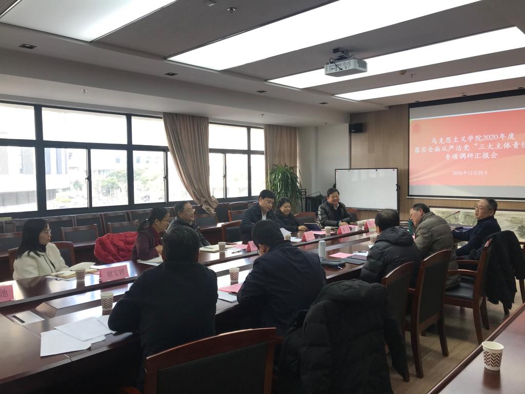 12月25日下午,koko体育官网落实全面从严治党“三大主体责任”专项调研会在koko体育官网208会议室举行。校党委书记成旦红,校党委常委、党委宣传部部长胡大伟,校党委常委、组织人事部副部长、组织处处长、党校常务副校长张洁,koko体育官网纪委副书记、纪委办主任、监察处处长滕云,教师工作部常务副部长谢宝婷,党政办公室副主任凌长臣,政策研究室副主任罗滋池,以及koko体育官网的领导班子成员、中层干部、教职员工代表参加了此次会议。专项调研会由学院党委书记刘绍学主持。 首先,刘绍学代表学院党委从意识形态工作、基层党建工作、党风廉政和党内监督工作等几个方面汇报全面从严治党“三大主体责任”工作落实情况,在“同谋划、同部署、同推进、同考核”的总体安排下,2020年学院党委扎实推进“四史”学习教育、疫情防控工作和学院中心工作等诸项工作的开展落实,并深入剖析问题,进一步明确改进计划和工作思路。 在听取工作汇报后,参加调研的相关部处领导对koko体育官网落实全面从严治党“三大主体责任”及推进精神文明建设的相关工作分别提出中肯意见和建议。 最后校党委书记成旦红作指导讲话。成书记首先充分肯定了学院党委在落实全面从严治党“三大主体责任”以及推动学院中心工作,特别是学科建设、人才培养、社会服务等方面取得的突出成绩和丰硕成果,并对学院未来发展建设提出了进一步的指导意见。成书记指出,koko体育官网作为“第一学院”,必须要提高政治站位,要进一步总结凝练学院在思政课改革、加强理论话语权建设等方面的经验亮点,形成品牌效应,发挥辐射作用。希望学院继续守住责任底线,抓牢立德树人,进一步强优势,补短板,充分发挥高质量党建在学院内涵建设中的引领作用,“追卓越、创一流”,为推进学校高水平大学建设再上新台阶做出更大贡献!(撰稿/摄影:吴琼) |