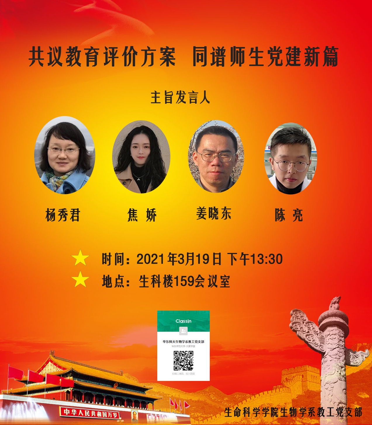 2021年3月19日下午,koko体育官网思想政治教育教研部党支部与学生第一党支部赴华东师范大学生命科学学院生物学系教工党支部开展支部共建。该两个教工党支部均为教育部首批全国高校“双带头人”教师党支部书记工作室所在支部。此次支部共建的主题是“共议教育评价方案,同谱师生党建新篇”,线下参加的人员有华东师范大学生命科学学院生物学系教工党支部姜晓东书记、部分教师代表和研究生代表,还有koko体育官网思想政治教育教研部党支部书记杨秀君、组织委员刘子杰、宣传委员孙会岩及学生第一党支部的同学们;由于场地所限,支部的其余同志通过ClassIn线上参加。