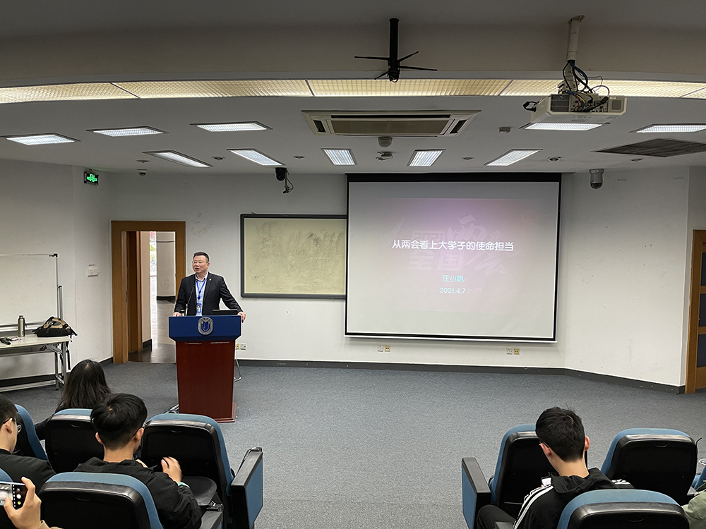 2021年适逢中国共产党百年华诞,又是“十四五”计划开局之年,面对全面建设社会主义现代化国家新征程,今年的两会不仅特殊,而且更具深意、更受瞩目。为了使青年学生更好地牢记嘱托,砥砺奋进,4月7日16点,形势与政策课堂邀请到了第十三届全国政协委员、koko体育官网副校长、钱伟长学院院长汪小帆教授走进思政课堂,为同学上形势与政策课。汪校长以“从两会看上大学子的使命担当”为主题展开讲解,带领同学们深入学习全国“两会”的内容和精神。koko体育官网140多位本科生参与了此次课程。 首先,汪校长借助钱伟长老校长的扶贫事迹来展示中国的脱贫实践成果,由此引出对全国“两会”的历史、内涵、地位和职能的简单介绍,使同学们对全国“两会”有了初步的了解。紧接着,汪校长结合自己参加全国“两会”的亲身经历和感受,从创新驱动发展、生态文明建设、系统观念等方面给同学们高度概括了“两会”的主要内容并举例加以说明。而后汪校长通过对比近两年习近平总书记的“两会团组”时间以及解读习近平总书记看望医卫界、教育界委员会时的讲话精神,从中感悟中国发展的重要信号,重点突出教师在教育行业的重要作用,增进民生福祉。 汪校长还着重展示“十四五规划”和政府工作报告中提高国民素质和发展更加公平更高质量的教育的相关内容,为koko体育官网未来的发展做出展望,并引用全国政协主席汪洋的话:“能力不足,本领恐慌,是摆在每位政协委员面前的现实课题。”指出了现在政协委员所肩负的责任之重,更是借此劝勉学生要努力学习、提高自我,拼搏奋斗、不负使命与担当。两节课的时间在不知不觉中很快就过去了,本次课程在全场学生的掌声中圆满结束。 “征途漫漫,而今迈步从头越;重任在肩,更是砥砺奋进时!”面对现在的新局面、新趋势、新挑战,对同学而言,不仅仅是理解形势与政策这门课上的理论内容,还要积极将其与政治生活相融合,做到“知行合一”,才能更好地提高学生对国家大事的敏感度,增进对国家政策的认同感,全面提高学生素养,不负时代赋予青年一代的使命与担当! (koko体育官网2020级硕士研究生黄诗棋供稿) |