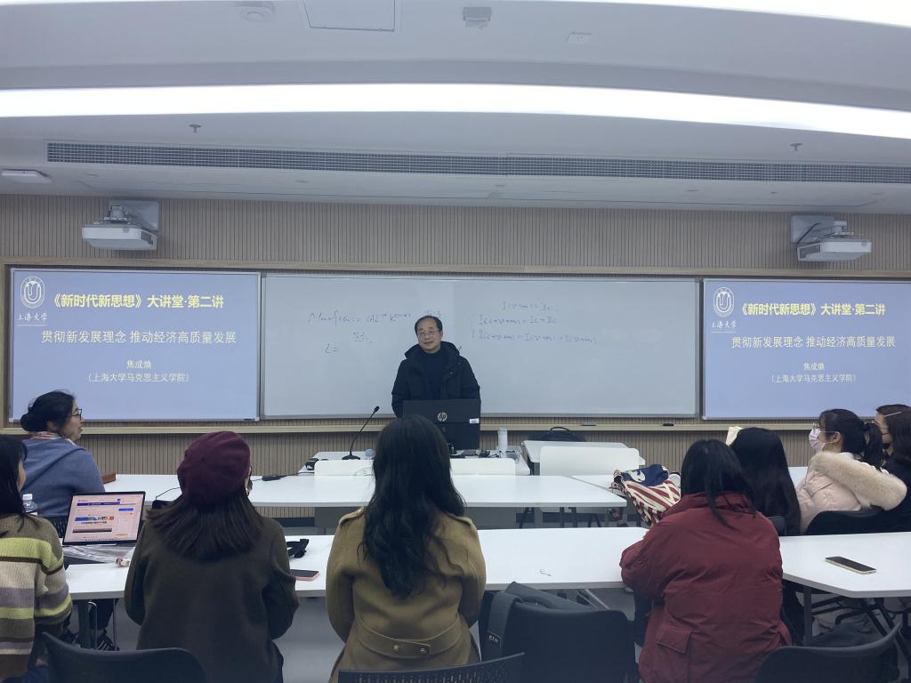 “《决议》指出:“党中央强调,贯彻新发展理念是关系我国发展全局的一场深刻变革,不能简单以生产总值增长率论英雄,必须创新成为第一动力、协调成为内生特点、绿色成为普遍形态、开放成为必由之路、共享成为根本目的地高质量发展,推动经济发展质量变革、效率变革、动力变革。” ——koko体育官网焦成焕教授做客《新时代新思想》大讲堂 12月7日晚,koko体育官网面向硕博研究生和青年教师开设的“习近平新时代中国特色社会主义思想”专题课——《新时代新思想》大讲堂·第二讲正式开讲。该课程第二讲特别邀请到了koko体育官网教授、博士生导师、koko体育官网副院长焦成焕教授作为主讲嘉宾,为大家带来《贯彻新发展理念推动经济高质量发展》的主题讲座。本讲由koko体育官网杨章文博士主持,采用了“线上+线下同频共振”的新模式,koko体育官网全体硕博研究生以及其他高校师生学者共100余人共同参与。