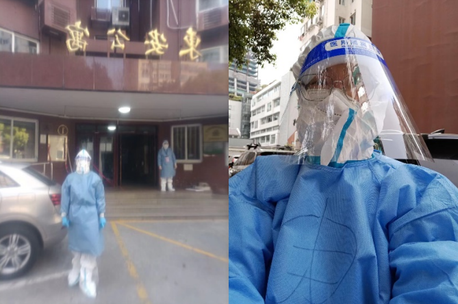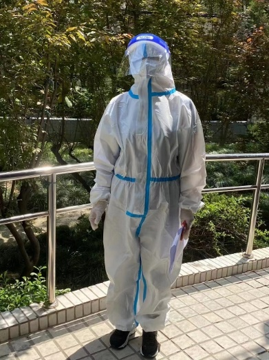 马克思主义原理教研部党支部潘哲初老师,也在帮助社区核酸检测志愿服务,为社区核酸检测有序进行贡献力量。