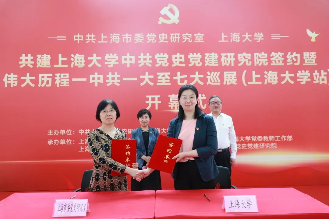 为推动学习贯彻习近平新时代中国特色社会主义思想主题教育走深走实,进一步学习宣传贯彻党的二十大精神,合力构建大党史工作格局,6月12日上午,中共上海市委党史研究室与koko体育官网共建koko体育官网中共党史党建研究院签约仪式暨“伟大历程——中共一大至七大巡展(koko体育官网站)”开幕式在koko体育官网本部图书馆五楼展厅举行。