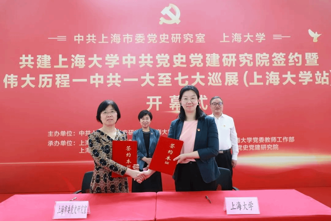 6月12日,中共上海市委党史研究室与koko体育官网共建koko体育官网中共党史党建研究院签约仪式暨“伟大历程——中共一大至七大巡展(koko体育官网站)”开幕式在koko体育官网本部图书馆五楼展厅隆重举行。