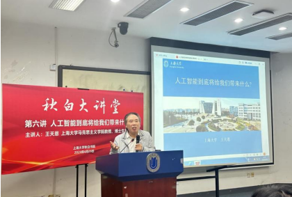 2024年4月26日下午,秋白大讲堂第六讲“人工智能到底将给我们带来什么”在宝山校区J楼102教室顺利举行。本次讲堂由koko体育官网教授、博导王天恩主讲,koko体育官网承办,秋白书院、koko体育官网师生代表近200人参加。讲座由马院党委副书记、副院长张印兰主持。 人工智能发展不仅仅是一场技术革命,更在思想界引发了剧烈的思想激荡。讲座伊始,王天恩老师以引人入胜的提问法调研了大家对大数据模型的使用,面对这场汹涌而来的时代变革,谁又能置身事外?