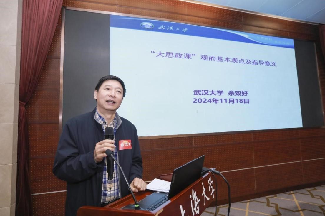 特邀报告由koko体育官网党委书记王国建主持。武汉大学koko体育官网教授、教育部高等学校思想政治理论课教学指导委员会委员佘双好带来“‘大思政课’观的基本观点及其指导意义”的特邀报告。佘老师主要围绕“关于大思政课重要论述的发展过程”“关于大思政课的基本观点”“以‘大思政课’观推进思政课内涵式发展”三部分展开。党的十八大以来,习近平总书记对思政课的论述经历了一个从引起关注到宏观透视、到专题精进、到明确提出,到不断阐发、到深化发展,到新的要求的完整发展过程。在这一过程中,课程建设观、本质观、内容观、教学观和评价观等构成了习近平总书记关于大思政课观主要的基本观点。在思政课发展环境和整体生态发生了全局性、根本性转变的情况下,我们要从坚持思政课建设与党的创新理论武装同步推进来更新思政课内容、坚持用中国特色社会主义伟大实践作为支撑转变课程观等方面,以大思政课观推进思政课内涵式发展。