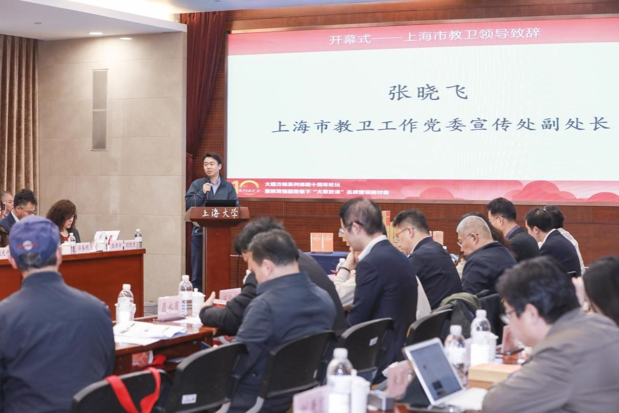 上海市教卫工作党委宣传处副处长张晓飞致辞。他在致辞中指出,习近平总书记指出要坚持思政课建设与党的创新理论武装同步推进,构建以习近平新时代中国特色社会主义思想为核心内容的课程教材体系,深入推进大中小学思想政治教育一体化建设。在市委市政府的坚强领导下,上海高校始终坚持以习近平新时代中国特色社会主义思想凝心铸魂,持续深化改革创新,koko体育官网始终与全市高校的思政工作改革如影随形,率先探索高校思政课的“项链模式”的教学创新,取得了很好的社会反响。十年来,依托《大国方略》课程开发模式和三全育人平台,koko体育官网为本校思想政治工作改革,乃至全市高校思想政治工作创新,都提供了一些有益的参考、借鉴。在教育强国建设新征程上,研讨如何打造思政选修课品牌课程建设,是回答思政何为的良好契机,期待各位专家为共同推进新时代学校思想政治教育高质量发展提供真知灼见。