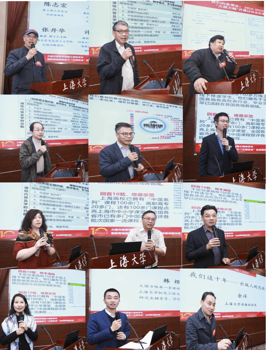 “一群浪漫者的志愿行动”。陈志宏、王蔚、聂永有、焦成焕、许春明、肖俊杰、张丹华、李明等老师一一深情回忆课程开课、备课、上课经历……首届大国方略课程班学生夏蓓发来深圳校友对课程组的祝贺,当年发言的韩栉同学成了学校研究生辅导员,回顾了在课程里得到的成长。koko体育官网出版社社长余洋作了“我们这十年——教材出版”的交流。《新民晚报》记者王蔚与会并发来文字,“祝贺koko体育官网的大国方略团队,十年磨一剑,既培养了学生,也培育了教师队伍,让更多学科教师加入课程思政队伍里来。我作为一名教育条线记者,也是专门跑上大的记者,幸运地也是大国方略课程一路发展的见证者和报道者。