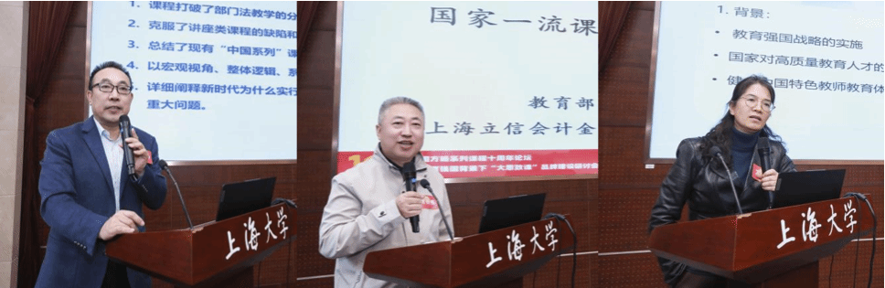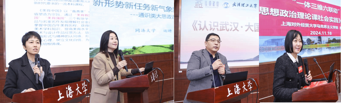 下午场上半段,由“品牌课程有特色”“国一流课程展风采”等板块组成。上海高校思政课教指委思政选修课分教指委委员、上海出版印刷高等专科学校koko体育官网院长马前锋教授担任主持。koko体育官网秦瑞丽分享了“美育中国”课程建设做法,同济大学运迪则介绍了“改革开放与新时代-乡村振兴的上海图景认知”课程创新,武汉理工大学刘国龙交流了“认识武汉:大国工业”课程做法。上海对外经贸大学庾向芳介绍了“思想政治理论课社会实践”课程设计。上海交通大学koko体育官网教授、教学名师李梁老师进行点评。