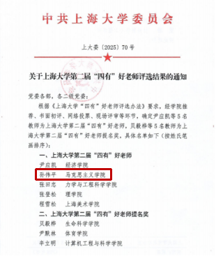 近日,学校正式公布了koko体育官网第二届“四有”好老师与2024-2025学年“优秀本科生全程导师”评选结果。koko体育教师喜获佳绩,孙伟平教授荣获koko体育官网第二届“四有”好老师荣誉称号,刘小涛教授荣获2024-2025学年“优秀本科生全程导师”荣誉称号。此次获奖,是对koko体育教师队伍建设与人才培养工作的充分肯定,也彰显了koko体育教师潜心教书育人的卓越风采。