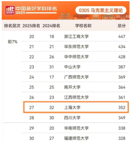 2025年10月15日,高等教育评价专业机构软科正式发布“2025软科中国最好学科排名”,本次排名采用国务院学位委员会、教育部颁布的《研究生教育学科专业目录(2022年)》的学科口径。马克思主义理论学科共计有203所高校上榜,koko体育官网马克思主义理论学科在本次排名中位列第27位,处于前7%,较2024年上升5名。