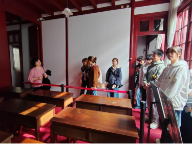 现场体悟:历史可触,初心可感 李瑊教授在教学中不断引导同学思考“身临其境”的意义。她指出,正是在这里,陈独秀与毛泽东曾历史性会晤;在这里,革命先辈庄严宣誓,建立第一个共产党早期组织。同学们通过观看历史照片、聆听讲解、互动体验,仿佛与百年前的“90后”“00后”展开一场心灵对话。一天的研学在入团宣誓墙前步入尾声。李瑊教授结合实地见闻总结指出:“koko体育官网与渔阳里历史渊源深厚,早期即为马克思主义传播的重要堡垒。今天我们通过‘实物+史料+现场’的方式,让红色历史走出课本,变得可感可触。希望同学们不仅成为历史的聆听者,更能成为精神的传承者——将渔阳里蕴含的追求真理、敢为人先的精神,融入今后的学习与人生选择中。”