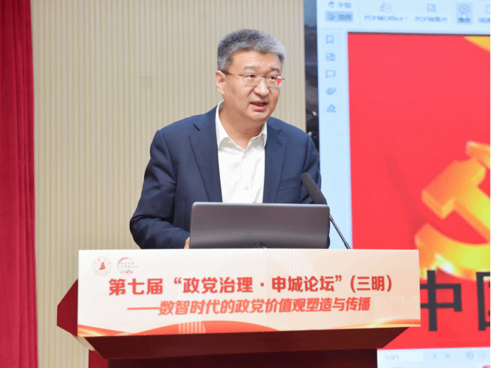 在开幕式致辞环节,三明学院党委书记陈列平在致辞中代表学校对与会嘉宾表示热烈欢迎。他指出,“政党治理·申城论坛”已成为探讨政党治理理论与实践的重要学术平台。本届论坛落地三明,是对三明作为全国群众性精神文明创建活动发源地的认同,是对当地红色基因与改革实践精神的呼应,也是“沪明合作”在高校学术科研交流合作的进一步拓展和深化。他指出,数字技术的迭代深刻重塑信息传播逻辑与社会认同机制,政党价值观建设既面临技术赋能的新机遇,也需应对价值多元传播的复杂挑战。他期待与会学者深入研讨,为政党在数智时代的价值引领与传播创新贡献智慧。