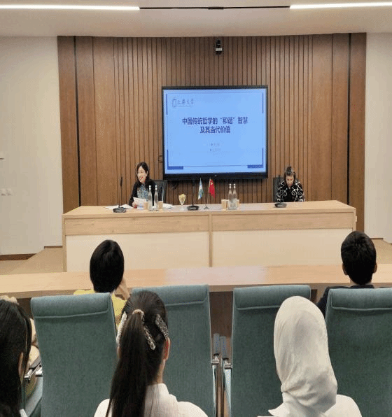 在“转型期公民道德教育的哲学基础”研讨会上,申小翠做了《中国传统哲学中的“和谐”思想及当代价值》专题发言,系统阐述中国公民道德教育理论与实践,引发与会者热烈讨论。张丹华在国际关系系做了《上海合作组织过去、现在与未来》主旨报告,报告之后学生和老师踊跃提问,如美国“关税战”对中美关系的影响、印巴冲突能否在上合组织框架内解决等,报告赢得师生热烈的掌声。晚上,代表团成员应邀参加了该校举办的纳乌鲁兹节。