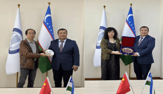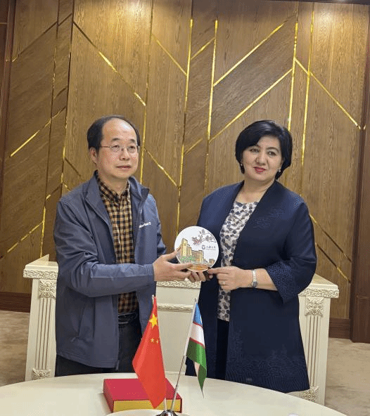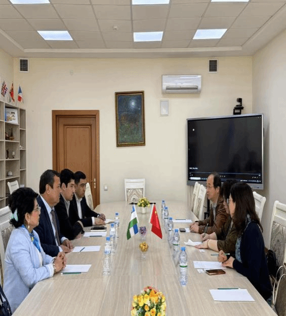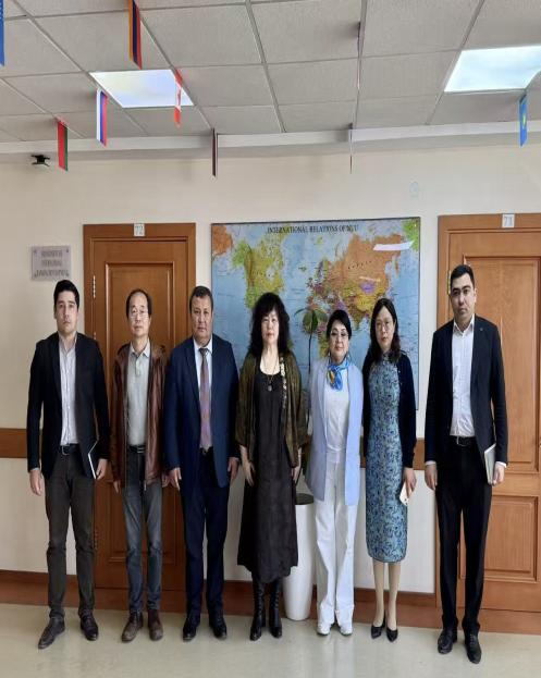 乌兹别克斯坦米尔扎•兀鲁伯民族大学副校长拉夫尚·穆苏尔马诺夫(Ravshan Musurmanov)、国际交流办公室负责人贾甫伦别克·马达托夫(Javlonbek Madatov)、人文社会科学系教授萨伊达· 阿戈扎姆霍德热耶娃(Saida Agzamkhodjaeva)等热情接待了代表团一行。双方就未来两校合作意向进行了有效沟通。