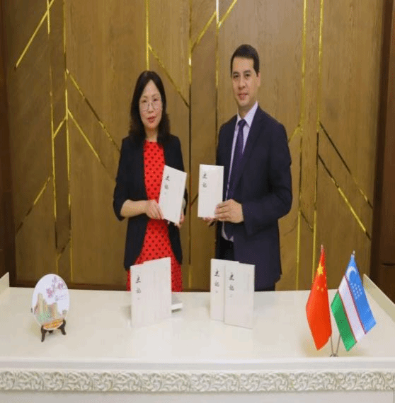 张丹华向塔什干国立东方学大学转交了koko体育官网国际交流学院和孔院办赠送的中文教学和汉语水平考试书籍、代表个人向大学赠送中国书法作品。申小翠代表个人向大学赠送了十卷本中国历史第一部纪传体通史《史记》。