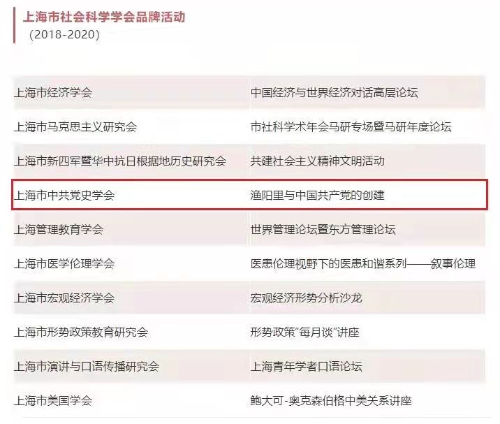 2022年3月1日召开的第十一次哲学社会科学学术团体工作会议,对获得“三优一特一品牌”称号的学术团体和优秀个人进行了表彰。上海市中共党史学会的“渔阳里与中国共产党的创建”荣获“上海市社会科学学会品牌活动(2018-2020)”荣誉称号。 “三优一特一品牌”是上海市社会科学界联合会开展的上海市优秀社会科学学会、上海市优秀民办社会科学研究机构、上海市优秀社会科学学会工作者、上海市社会科学学会特色活动、上海市社会科学学会品牌活动的评选工作,每三年评选一次,2018-2020年度的评选活动于2021年11月17日正式揭晓。上海市中共党史学会渔阳里研究专业委员会领衔主持的“渔阳里与中国共产党的创建”是继2018年荣获“2015-2017年度上海市社会科学学会特色活动”后,所获得又一项重大殊荣。 上海市中共党史学会渔阳里研究专委会由koko体育官网教授李瑊老师担任主任,在她的带领下,渔阳里研究专委会已经成为上海社科界有影响的专业学会,取得的发展和成绩有目共睹,获得了社会各界的关注和好评。研究团队在“渔阳里”为核心的中共创建史的资料收集、研究和宣传方面做了许多工作,在发掘宣传“渔阳里”的工作中堪称拓荒者,做出了开创性的重要贡献。此次获奖,即是对渔阳里研究专委会工作的肯定。