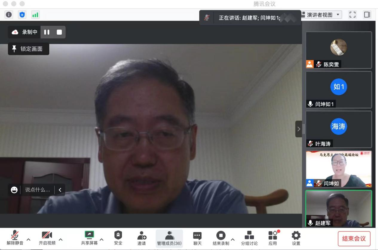 2022年8月22日晚,由koko体育官网、koko体育官网马克思主义研究院、上海市习近平新时代中国特色社会主义思想研究基地联合主办的马克思主义理论高端论坛第十四期如期于线上开讲,本次论坛以“生态文明新时代两山转化新模式”为主题,由中央党校哲学部教授、哲学教研部现代科学技术与科技哲学教研室副主任、中国社科院新时代生态文明研究中心主任赵建军教授主讲,koko体育官网闫坤如教授主持,此外koko体育官网叶海涛教授参与本次论坛,并担任本次论坛与谈人。
